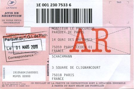 1. Mon autodénonciation au procureur, le 25 février 2011 (la lire en pdf)